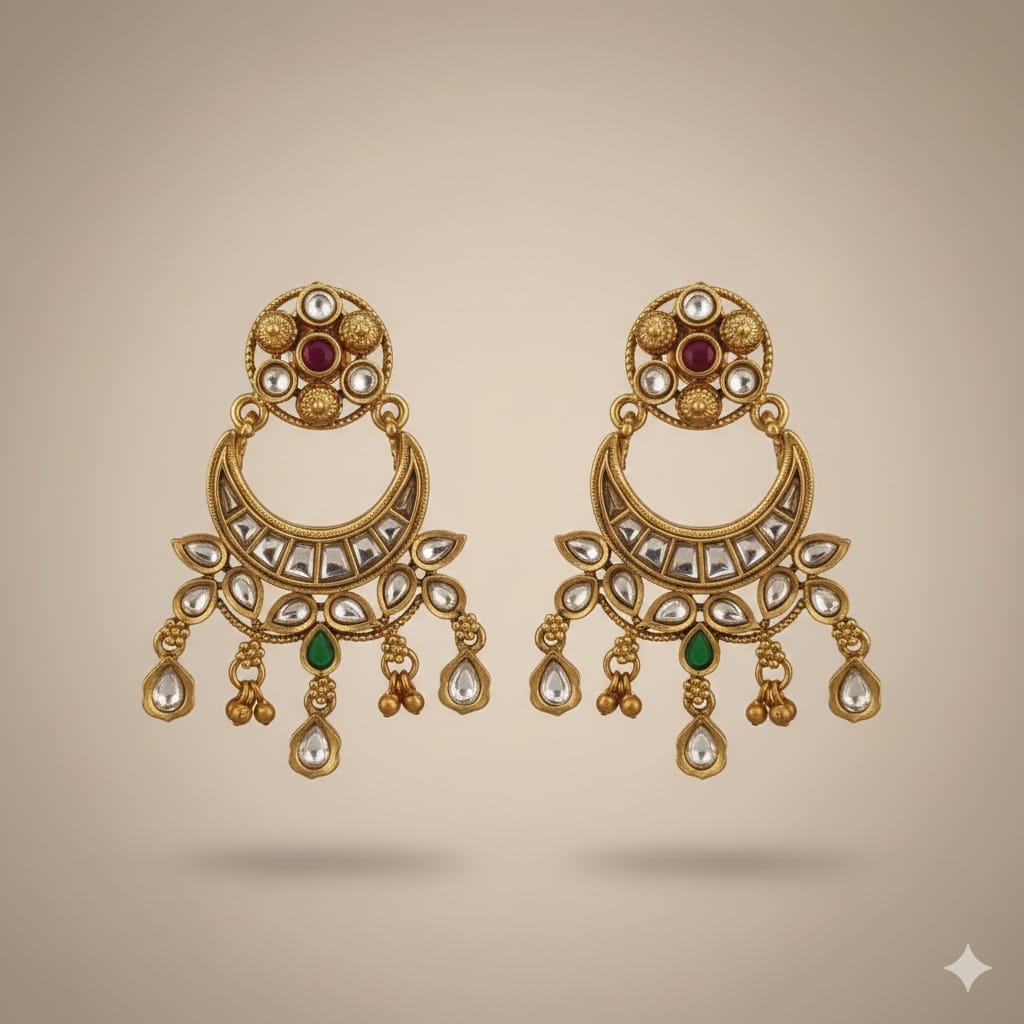Be the first to review “Chandbali Earrings in Gold Polish with Kundan and Green Drop”
