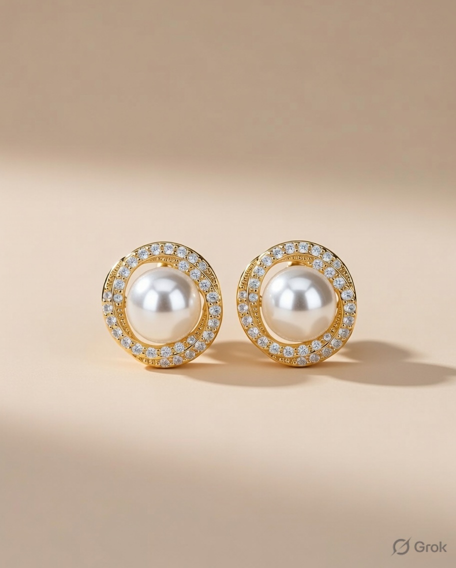 Be the first to review “Gold Infinity Twist Pearl Stud Earrings with Crystal Halo”